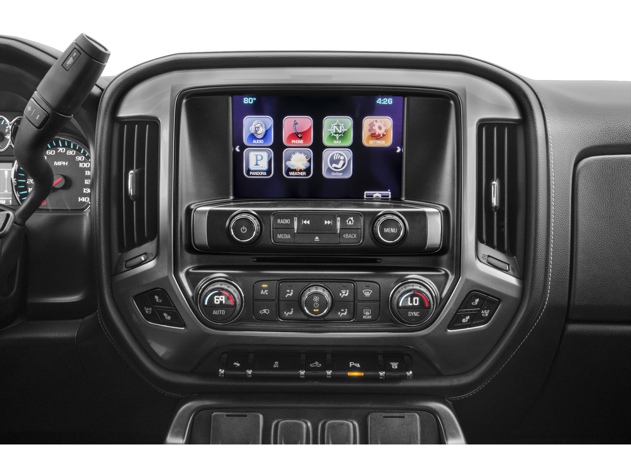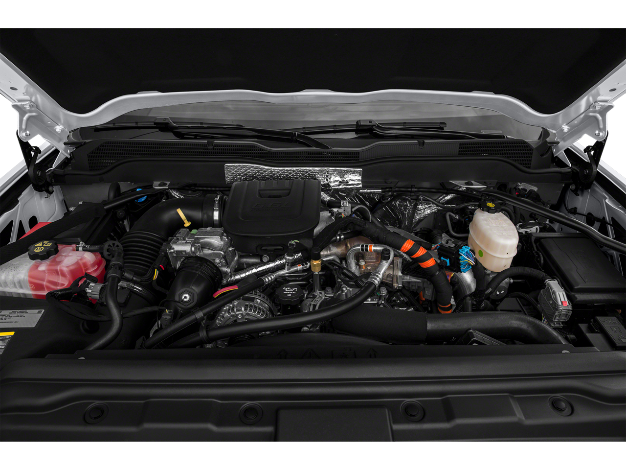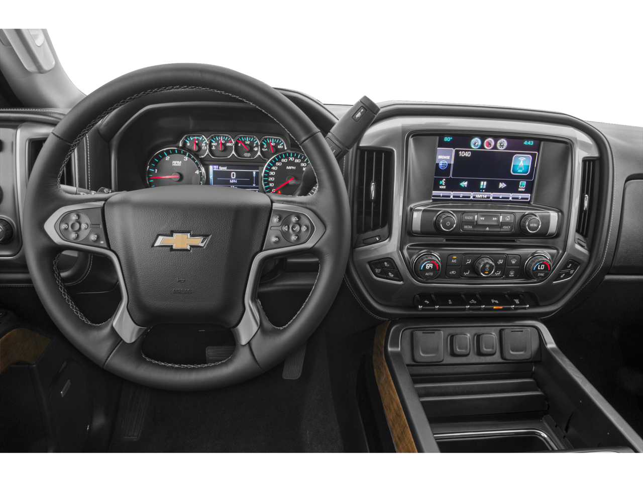 (397 hp [296.0 kW] @ 3000 rpm, 765 lb-ft of torque [1032.8 N-m] @ 1600 rpm) Includes (K40) exhaust brake.), includes (AG1) driver 10-way power seat adjuster when ordered with (AZ3) bench seats only, (CJ2) dual-zone automatic climate control, (BTV) Remote vehicle starter system, (IO5) Chevrolet MyLink 8" Diagonal Color Touch audio system, (UVC) Rear Vision Camera, (C49) rear-window defogger, (N37) manual tilt and telescoping steering column, (KI4) 110-volt power outlet, and (T3U) fog lamps (Includes (CJ2) dual-zone automatic climate control, (IO5) Chevrolet MyLink 8" Diagonal Color Touch audio system. with overdrive, electronic engine grade braking and tow/haul mode, includes (UG1) Universal Home Remote, (UD7) Rear Park Assist, (JF4) power adjustable pedals, (A48) rear sliding power window and (C49) rear-window defogger, (Includes (UTJ) Theft-deterrent system.), SEATING, HEATED DRIVER AND FRONT PASSENGER, USB ports, auxiliary jack, SD card slot, Bluetooth® streaming audio for music and most phones, hands-free smartphone integration, Pandora Internet radio, voice-activated technology for radio and phone, Includes driver and front passenger recline with outboard head restraints and center fold-down armrest with storage. Also includes manually adjustable driver lumbar, lockable storage compartment in seat cushion, and storage pockets. (STD).