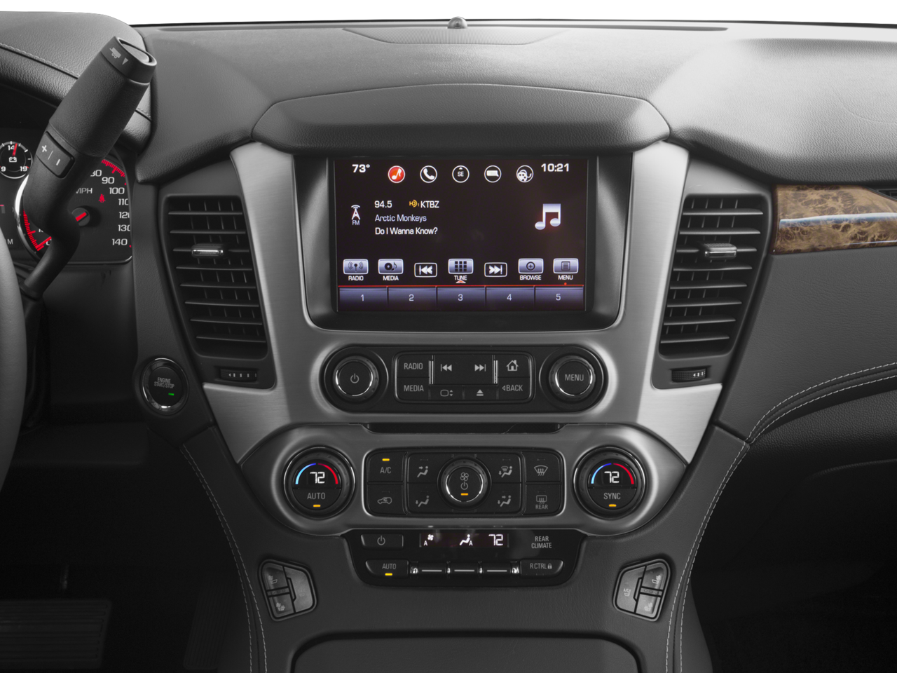 OPEN ROAD PACKAGE, (CF5) power sunroof, (U42) rear seat entertainment system and on SLT (IO6) Audio system with navigation, ENTERTAINMENT SYSTEM, REAR SEAT BLU-RAY/DVD. Includes two 2-channel wireless infrared headphones, rear seat audio controls, USB port and SD card slot, ADAPTIVE CRUISE CONTROL with Front Automatic Braking, radar based system automatically adjusts speed to maintain preset following distance, HEAD-UP DISPLAY Includes digital multi-function readouts, ENHANCED SECURITY PACKAGE body security content, includes (UTJ) Theft-deterrent system, (UTR) self-powered horn, (UTV) interior movement and (UTU) vehicle inclination sensors, door and liftgate lock shields and glass break sensors in rear quarter glass and liftgate window, removes sunglass holder and conversation mirror from overhead console, 8" DIAGONAL COLOR TOUCH SCREEN NAVIGATION WITH INTELLILINK includes new text message alerts and Siri Eyes Free functionality through voice command, AM/FM with USB ports, auxiliary jack, Bluetooth® streaming audio for music and most phones, hands-free smartphone integration, voice-activated technology for radio and phone and an articulating screen with hidden storage. Includes 5 USB ports and 1 auxiliary jack (STD), ENGINE, 6.2L ECOTEC3 V8 with Active Fuel Management, Direct Injection and Variable Valve Timing, includes aluminum block construction (420 hp [313 kW] @ 5600 rpm, 460 lb-ft of torque [624 N-m] @ 4100 rpm) (STD), TRANSMISSION, 8-SPEED AUTOMATIC (STD), AUTOMATIC COLLISION PREPARATION Intelligent Brake Assist - Collision Avoidance Braking.