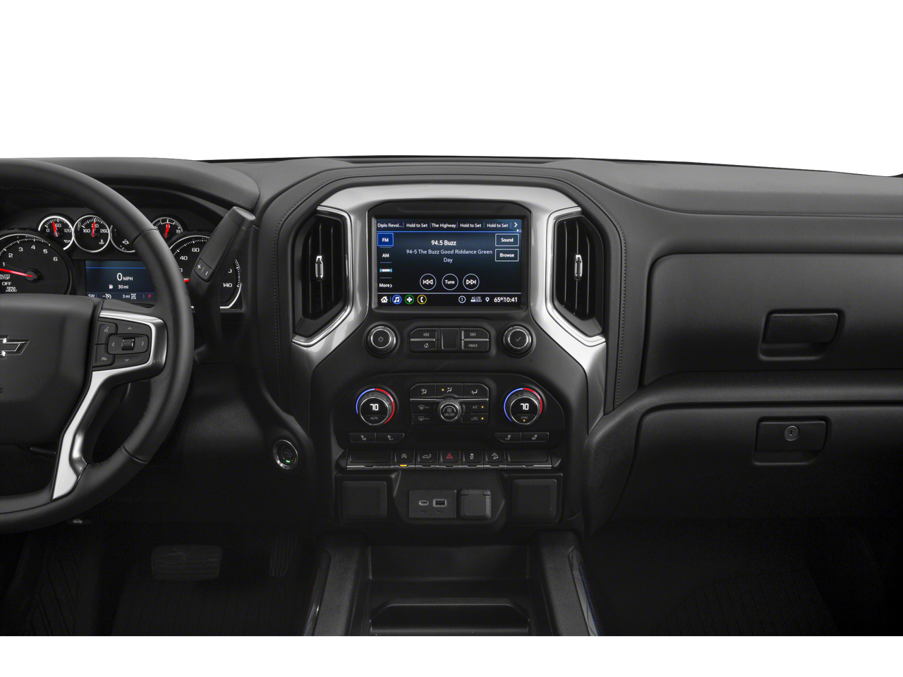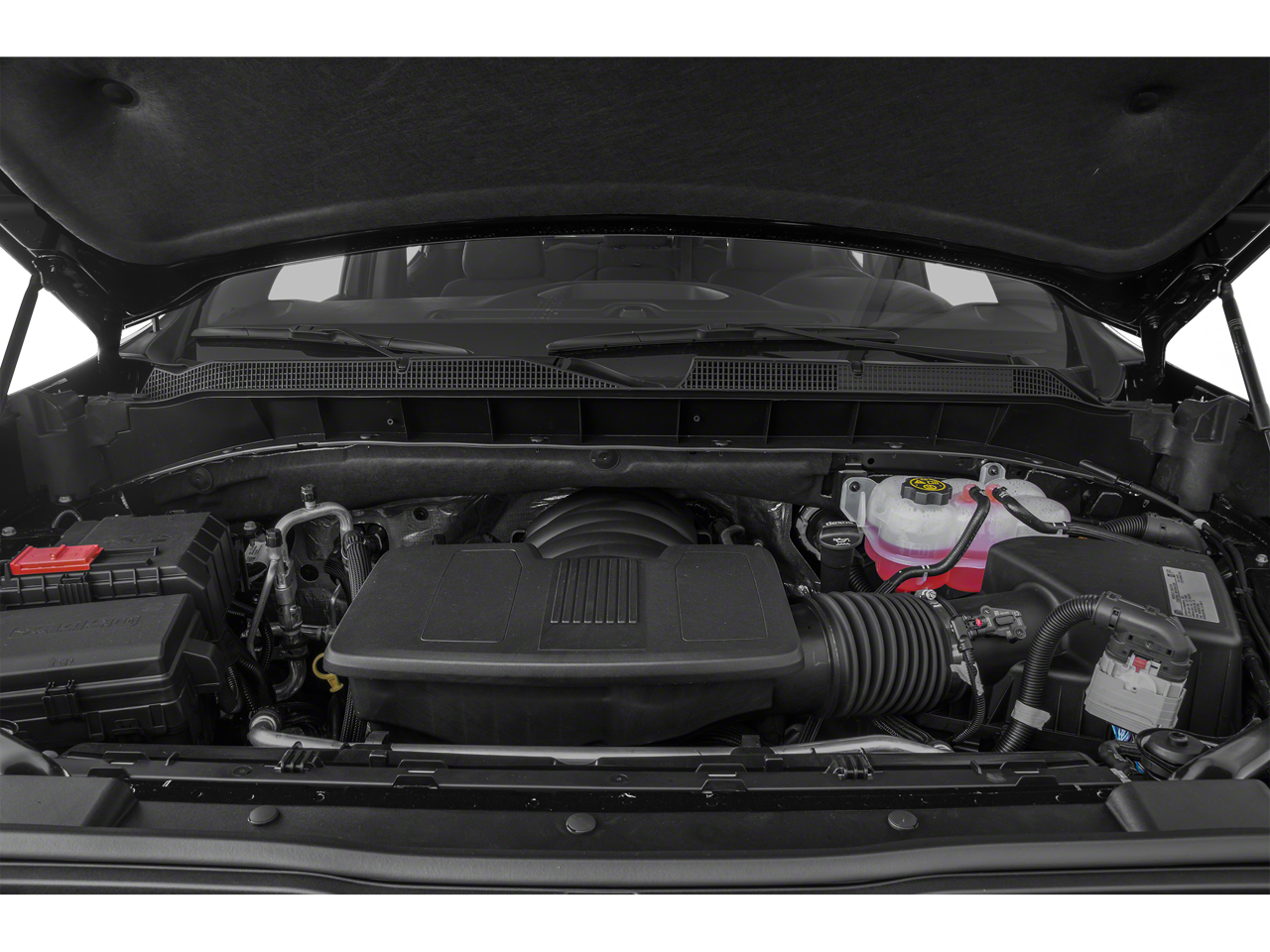 includes (A50) bucket seats, (D07) center console, (CJ2) dual-zone automatic climate control, (A2X) 10-way power driver seat including power lumbar, (KA1) heated driver and passenger seats, (KI3) heated steering wheel and (N37) manual tilt-telescoping steering column; Crew Cab models include (R7O) Cloth Rear Seat with Storage Package and includes (SNR) Up-level Rear Seat with Storage Package. includes (UG1) Universal Home Remote, (A48) rear sliding power window, (KI4) 120-volt power outlet, (KC9) 120-volt bed-mounted power outlet, (IOS) Chevrolet Infotainment System with 8" diagonal color touch-screen with (MCR) USB ports, SiriusXM with 360L, (U2L) HD radio and (UVB) HD Rear Vision Camera Includes (UQA) Bose Premium Sound System.), includes (B1J) wheel house liners and (CGN) Chevytec spray-on bedliner, (355 hp [265 kW] @ 5600 rpm, 383 lb-ft of torque [518 Nm] @ 4100 rpm); featuring all-new Dynamic Fuel Management that enables the engine to operate in 17 different patterns between 2 and 8 cylinders, depending on demand, to optimize power delivery and efficiency (STD), 60/40 folding bench for Crew Cab models, includes full-length bench seat, seatback storage on left and right side, center fold out armrest with 2 cupholders, full cab width underseat storage, (includes child seat top tether anchor).