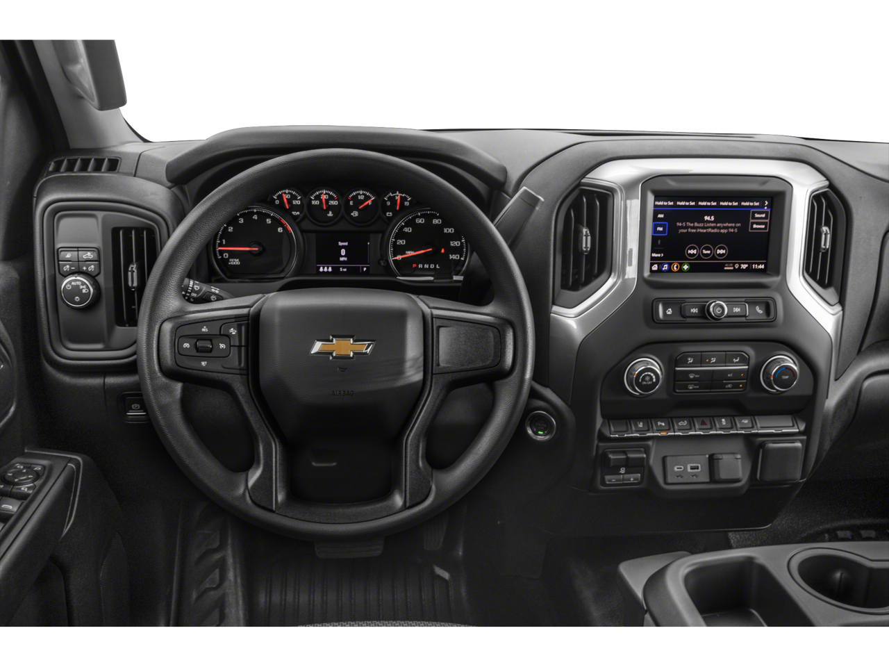 includes (KI4) 120-volt power outlet, (KC9) 120-volt bed-mounted power outlet, (UF2) Cargo bed LED lighting, (UBI) 2 charge-only USB ports for second row, (CJ2) dual-zone automatic climate control, (A2X) 10-way power driver seat including power lumbar, (N37) manual tilt/telescoping steering column, (T3U) LED fog lamps, lower convex mirrors, turn signal indicators, puddle lamps, perimeter lighting, auxiliary lighting, power folding/manual extending (extends 3.31" [84.25mm]) Includes (DD8) auto-dimming rearview mirror.), includes (BTV) Remote Start, (UTJ) Theft Deterrent System and (C49) rear-window defogger, includes (Z71) Off-Road suspension with off-road tuned twin tube Rancho shocks, (JHD) Hill Descent Control and (NZZ) skid plates (transfer case and oil pan) Includes (QXT) LT265/70R17 all-terrain, blackwall tires and molded in color Black grille. includes (KA1) Heated driver and passenger seats and (KI3) Heated steering wheel, with Google built-in compatibility (select service plan required, terms and limitations apply) including navigation capability, 13.4" diagonal HD color touchscreen, includes multi-touch display, AM/FM stereo, Bluetooth® streaming audio for music and most phones; featuring Wireless Apple CarPlay® and Wireless Android Auto® capability for compatible phones, advanced voice recognition, in-vehicle apps, personalized profiles for infotainment and vehicle settings (STD), with Direct Injection and Variable Valve Timing, gasoline, (401 hp [299 kW] @ 5200 rpm, 464 lb-ft of torque [629 N-m] @ 4000 rpm) (STD), (STD).