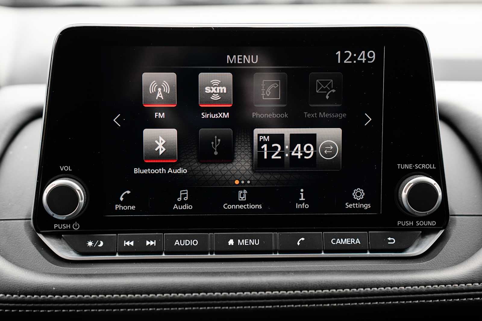 - Radio: AM/FM NissanConnect -inc: 6 speakers plus 2 tweeters, Apple CarPlay, Android Auto, 8" color touch screen display, Bluetooth®, 2 front USB type-C, Wi-Fi hotspot and NissanConnect Services powered by SiriusXM